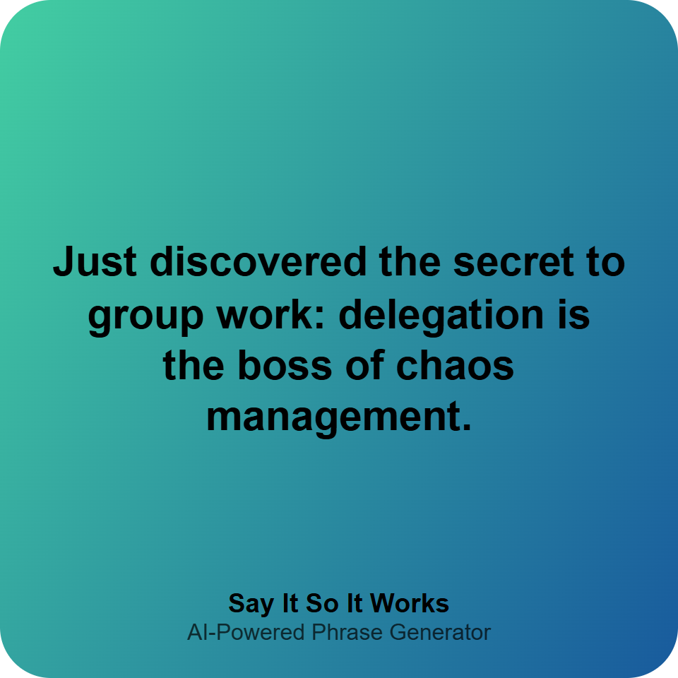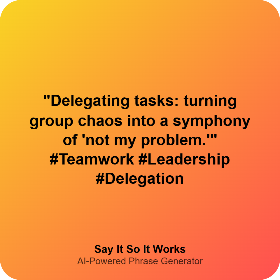 "Delegating tasks: turning group chaos into a symphony of 'not my problem.'" #Teamwork #Leadership #Delegation