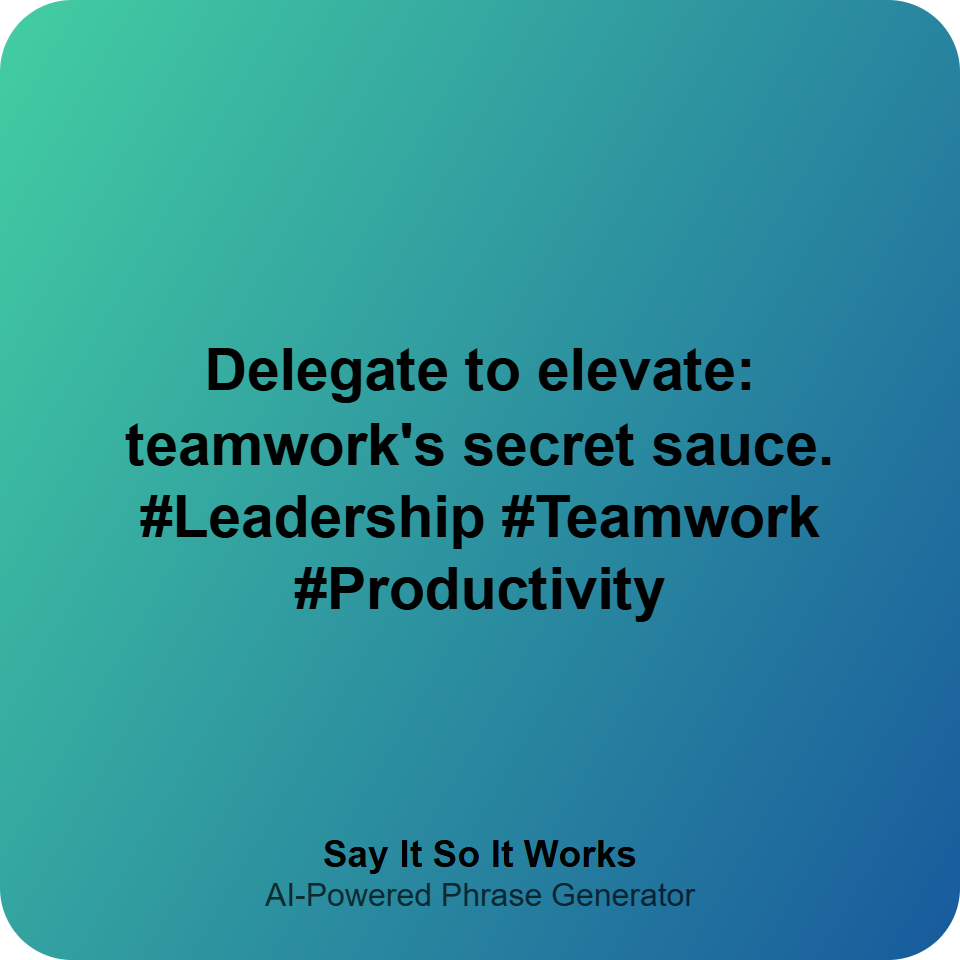 Delegate to elevate: teamwork's secret sauce. #Leadership #Teamwork #Productivity