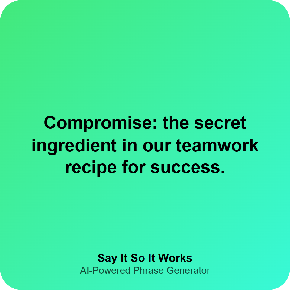 Compromise: the secret ingredient in our teamwork recipe for success.