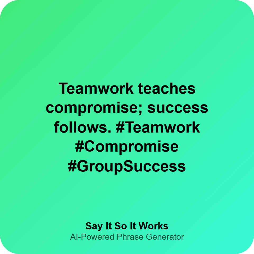 Teamwork teaches compromise; success follows. #Teamwork #Compromise #GroupSuccess
