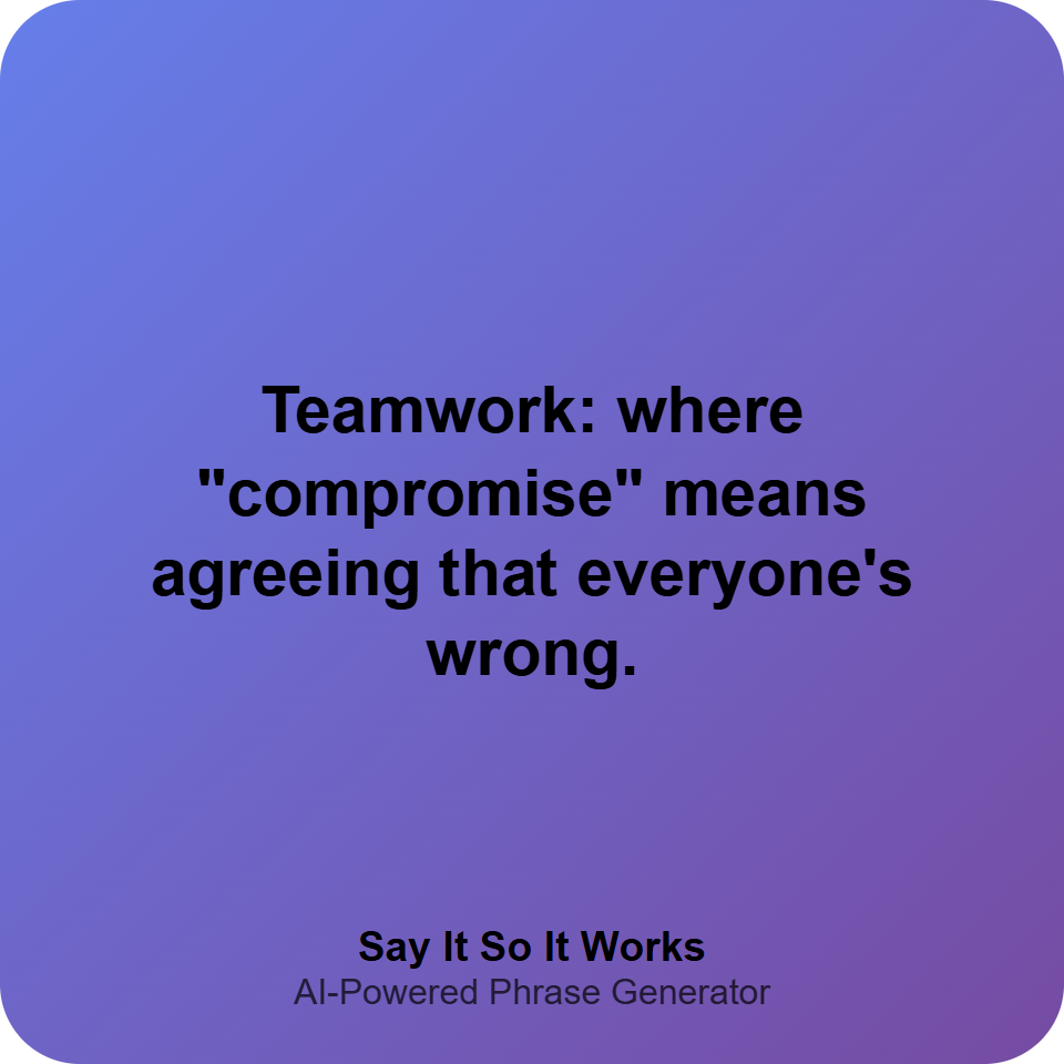 Teamwork: where "compromise" means agreeing that everyone's wrong.