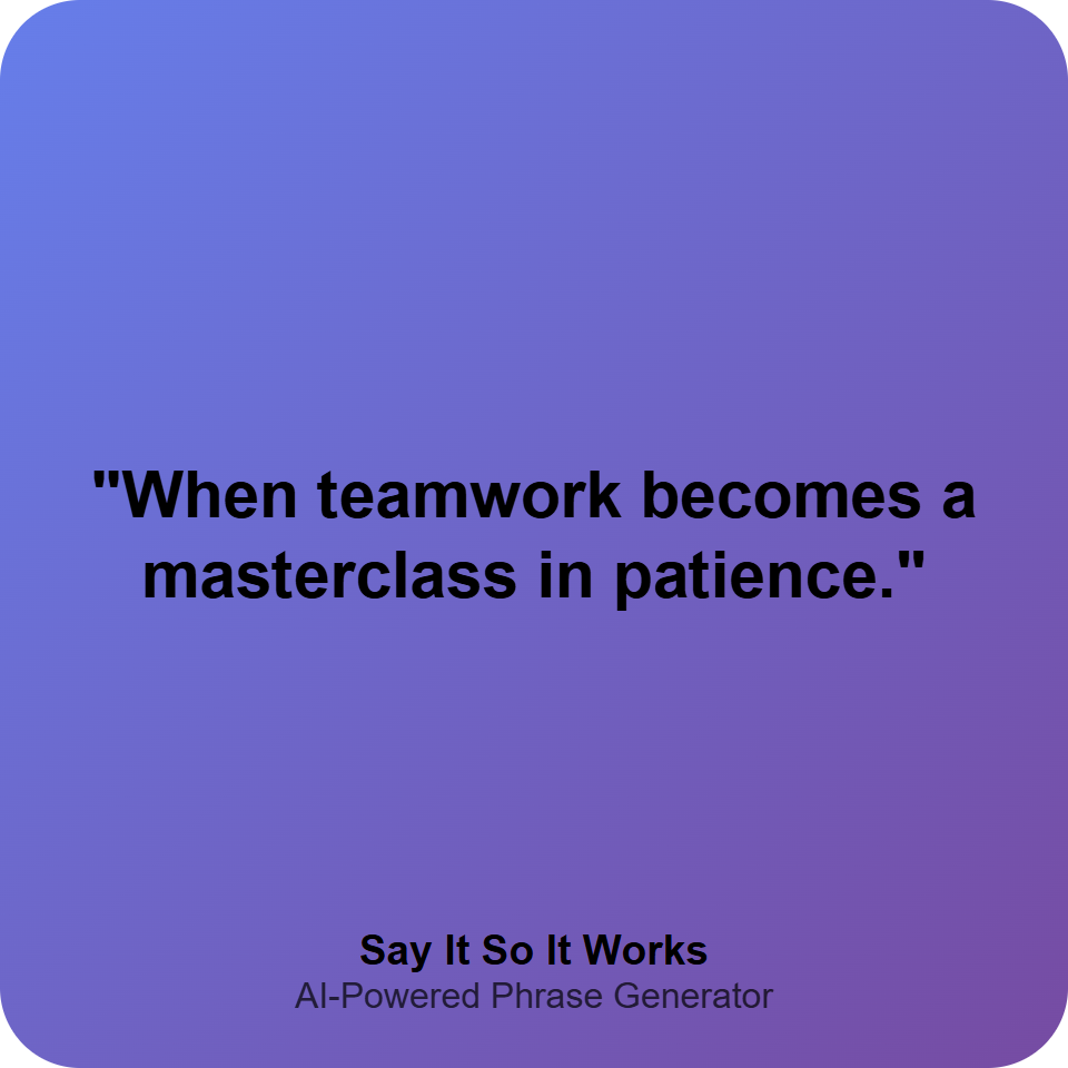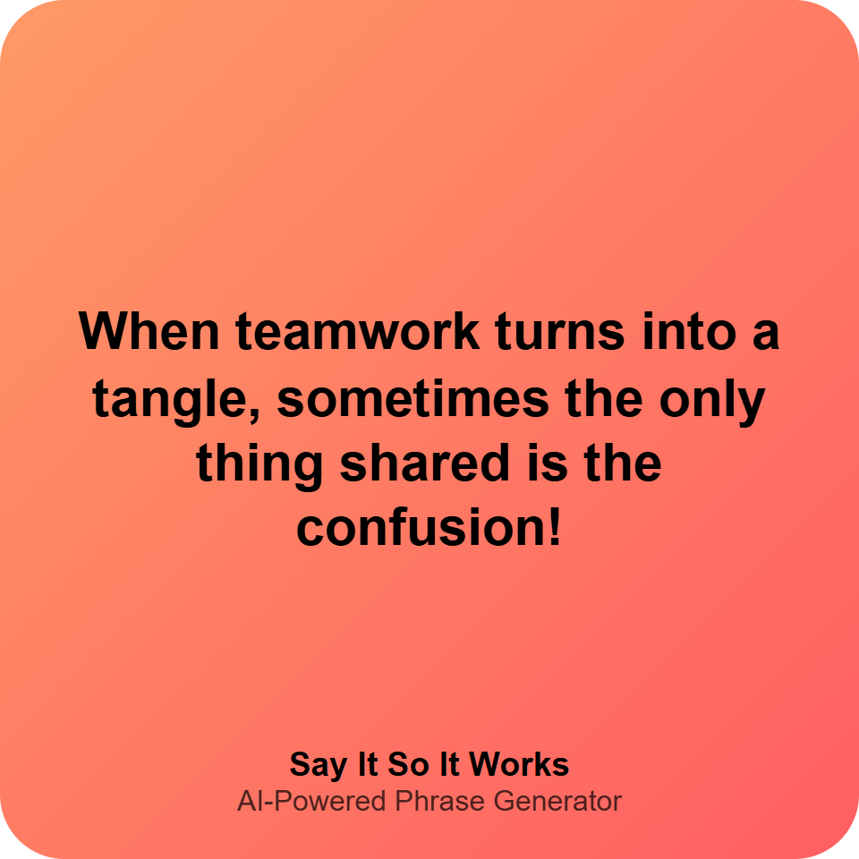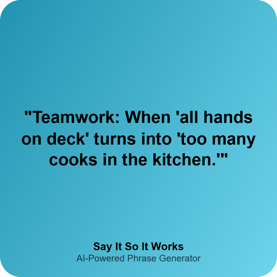 "Teamwork: When 'all hands on deck' turns into 'too many cooks in the kitchen.'"