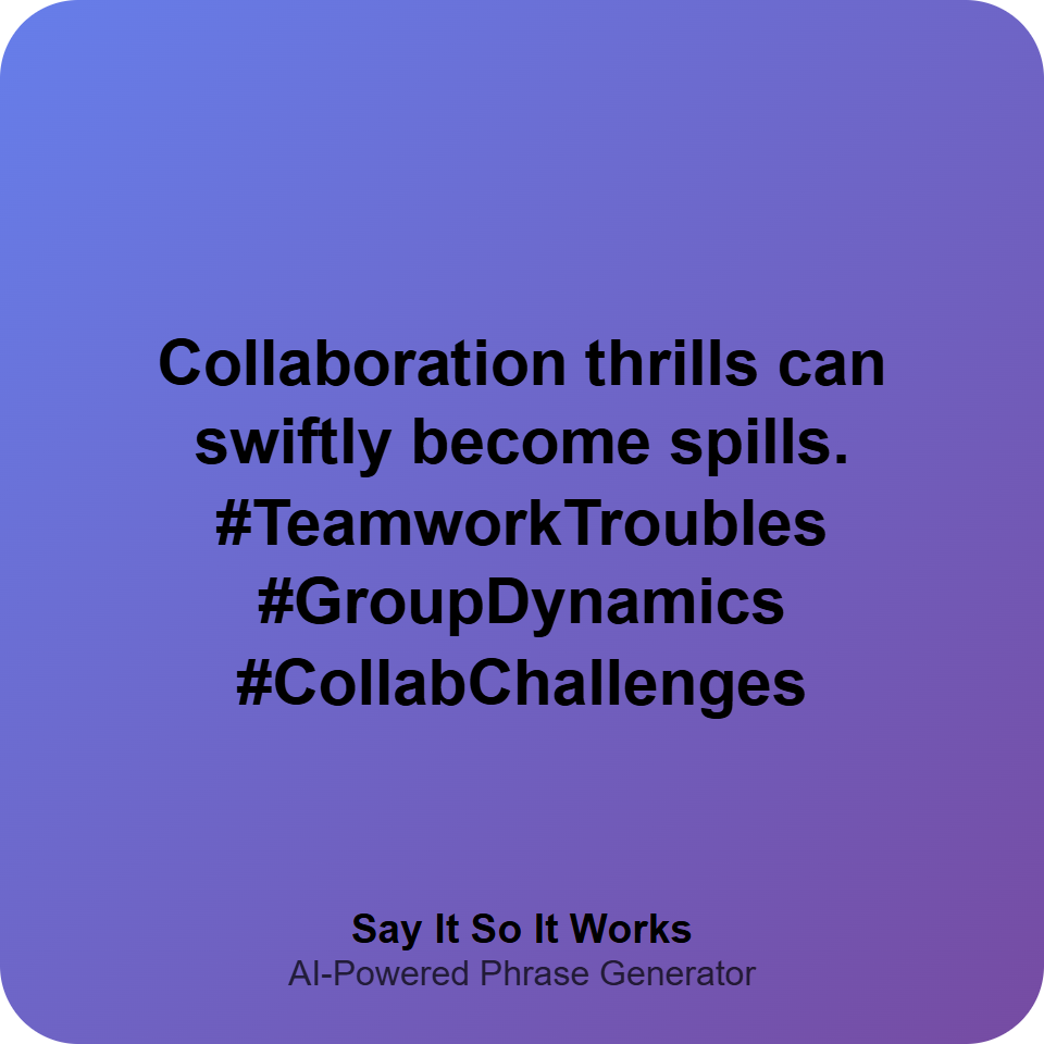 Collaboration thrills can swiftly become spills. #TeamworkTroubles #GroupDynamics #CollabChallenges