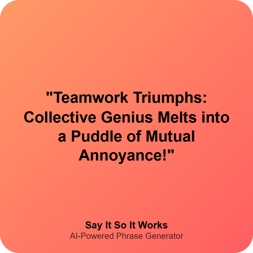 "Teamwork Triumphs: Collective Genius Melts into a Puddle of Mutual Annoyance!"