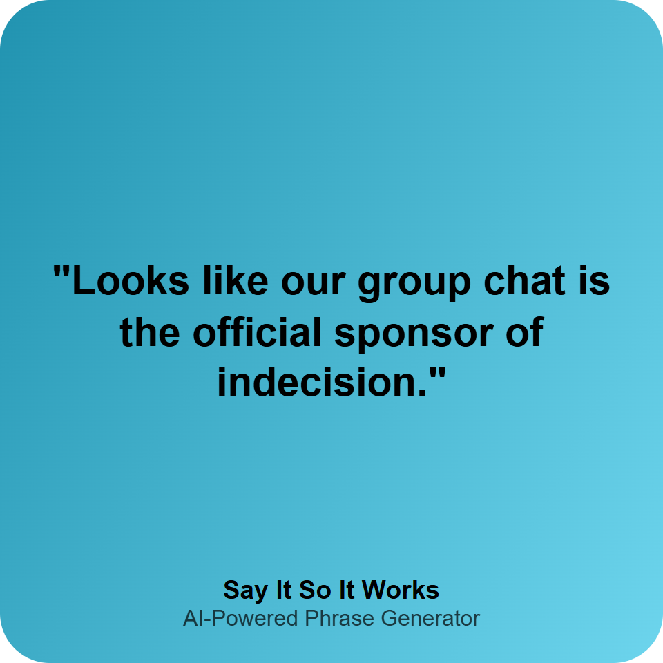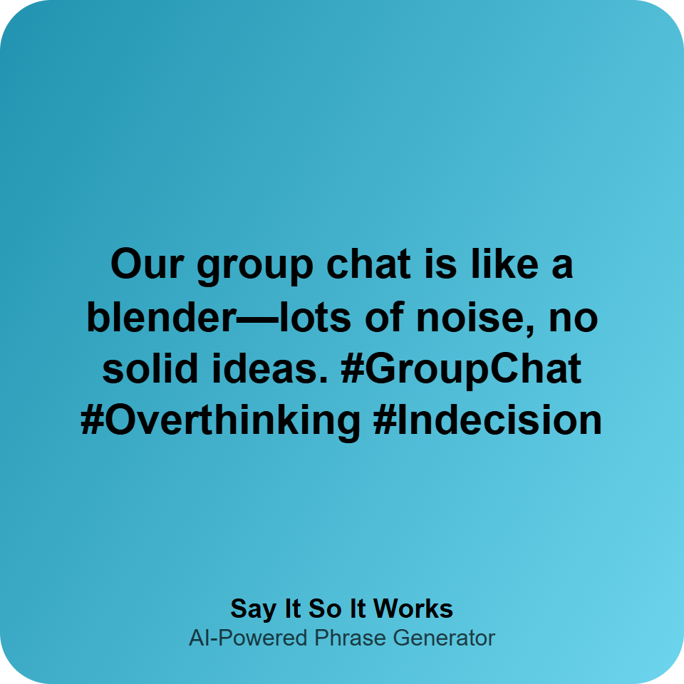 Our group chat is like a blender—lots of noise, no solid ideas. #GroupChat #Overthinking #Indecision