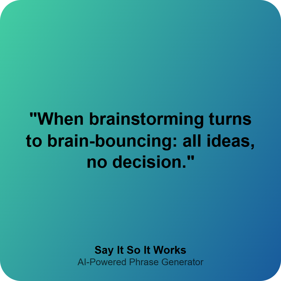 "When brainstorming turns to brain-bouncing: all ideas, no decision."