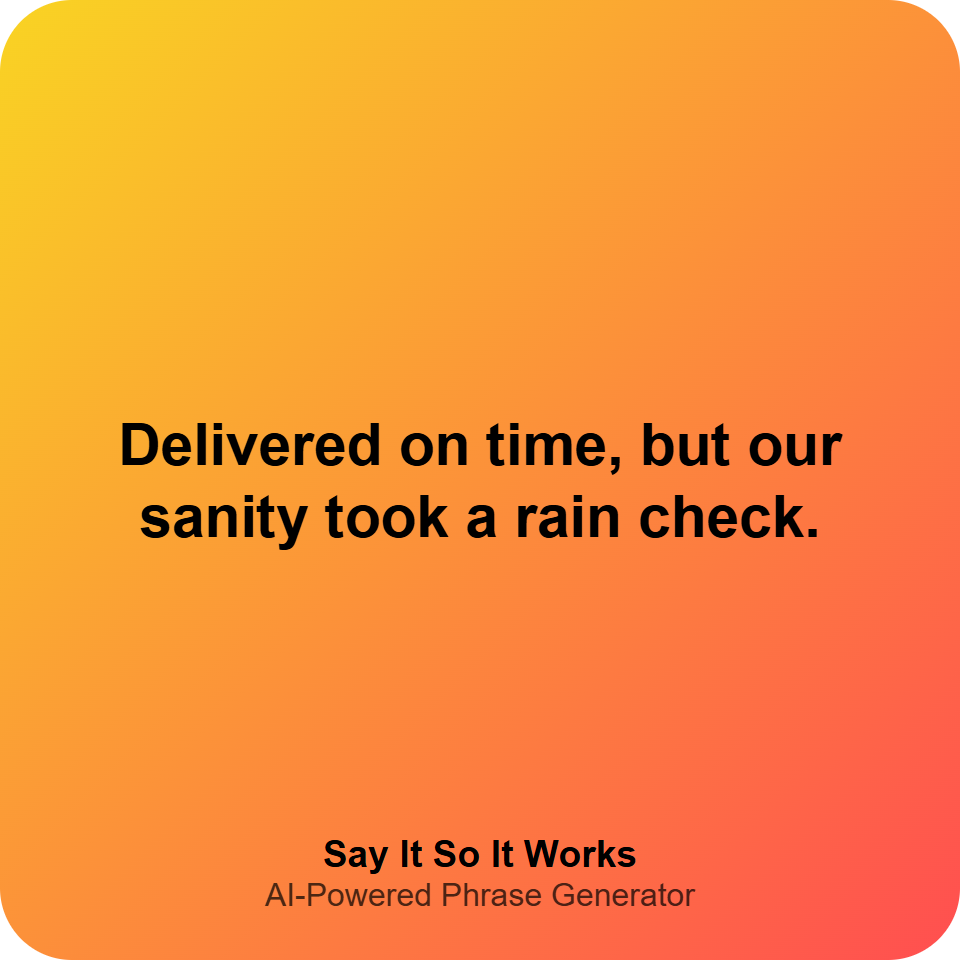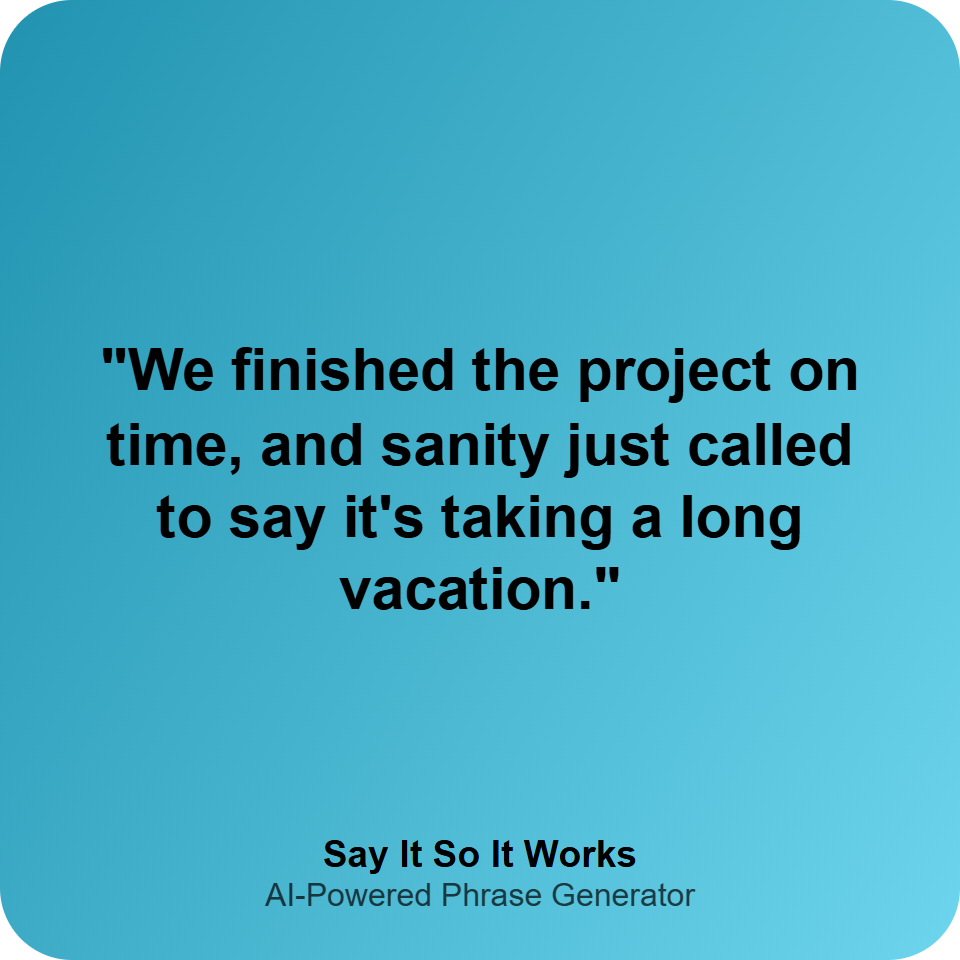 "We finished the project on time, and sanity just called to say it's taking a long vacation."