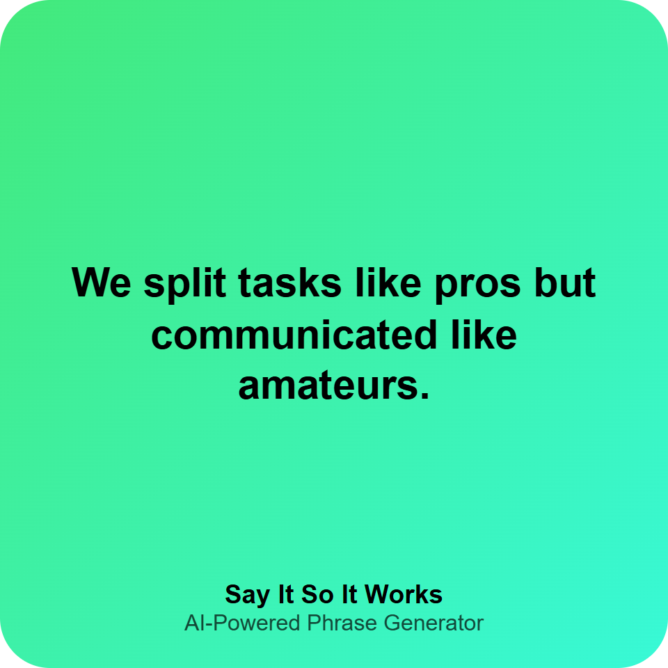 We split tasks like pros but communicated like amateurs.