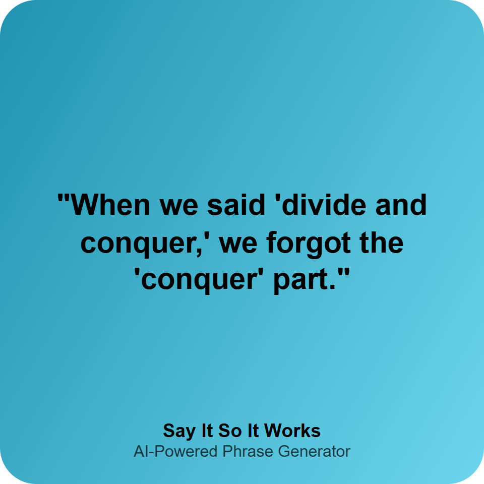 "When we said 'divide and conquer,' we forgot the 'conquer' part."