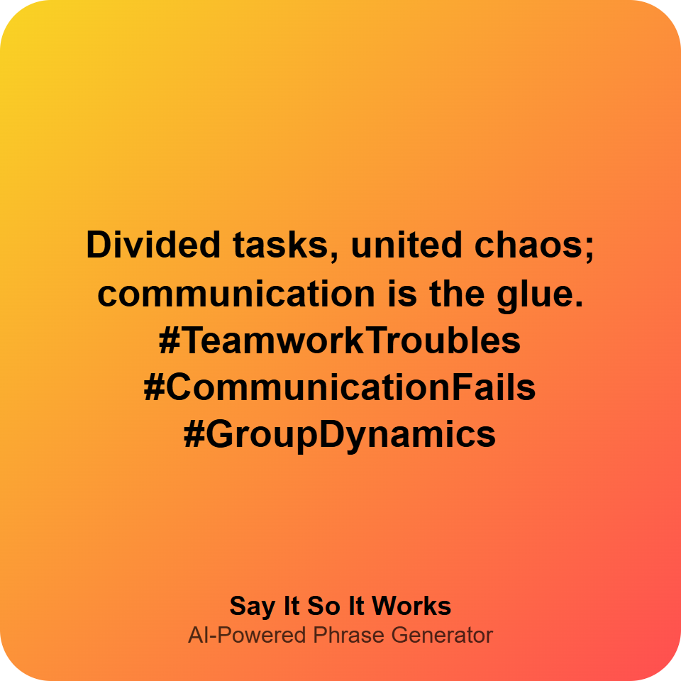Divided tasks, united chaos; communication is the glue. #TeamworkTroubles #CommunicationFails #GroupDynamics