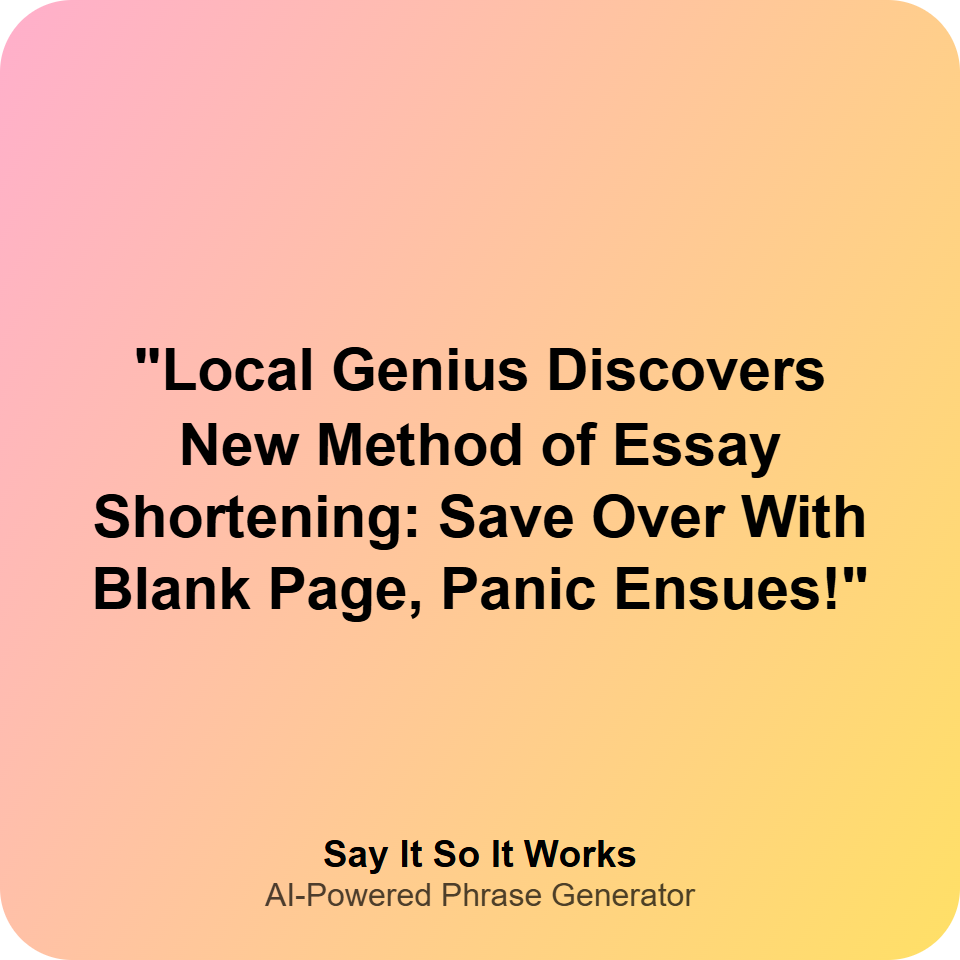 "Local Genius Discovers New Method of Essay Shortening: Save Over With Blank Page, Panic Ensues!"