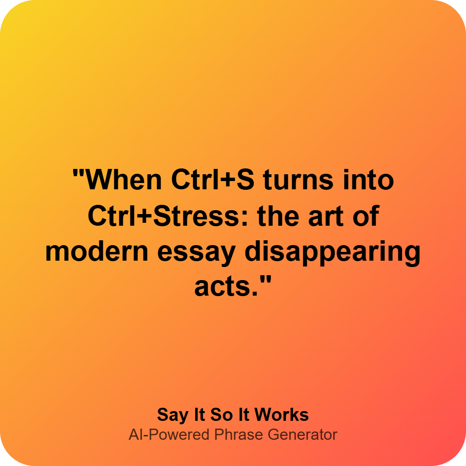 "When Ctrl+S turns into Ctrl+Stress: the art of modern essay disappearing acts."