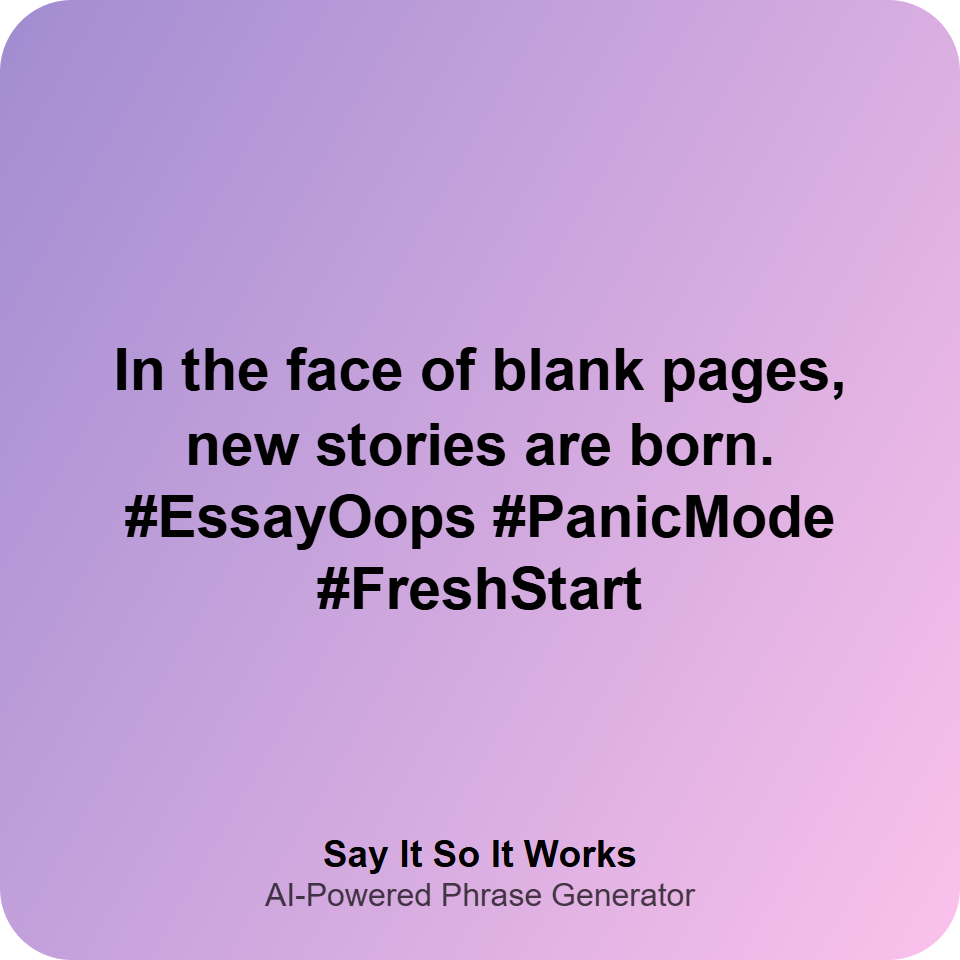 In the face of blank pages, new stories are born. #EssayOops #PanicMode #FreshStart