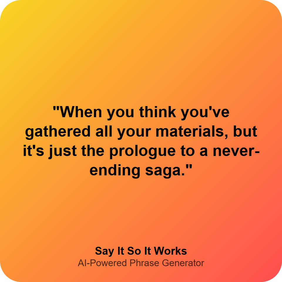 "When you think you've gathered all your materials, but it's just the prologue to a never-ending saga."