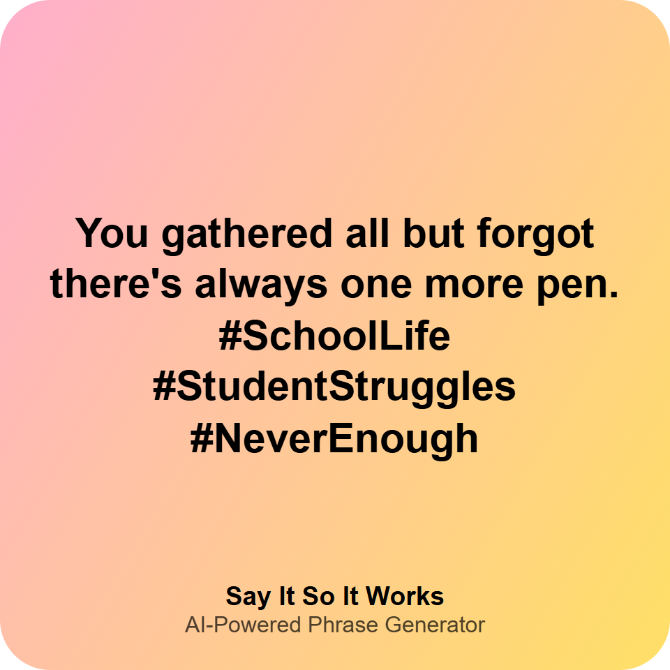 You gathered all but forgot there's always one more pen. #SchoolLife #StudentStruggles #NeverEnough