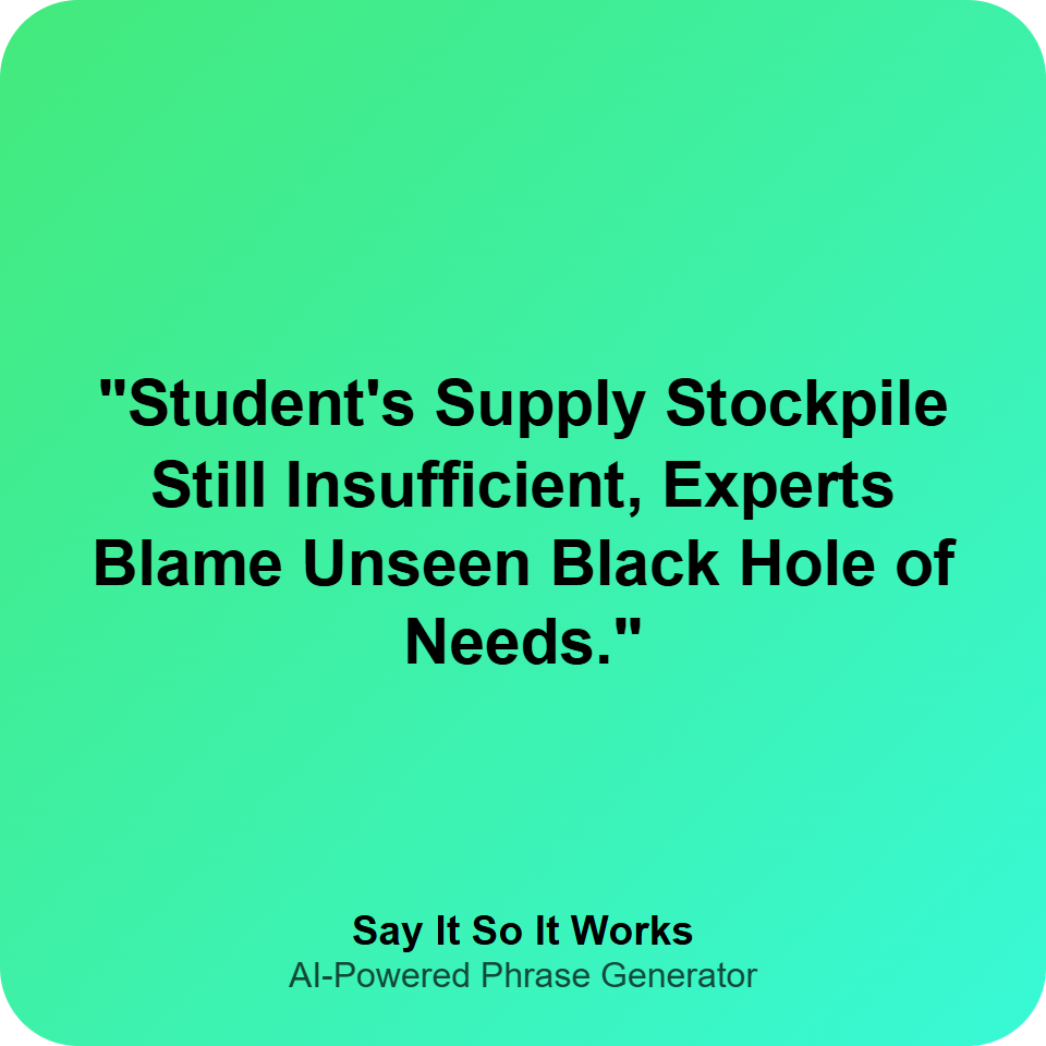 "Student's Supply Stockpile Still Insufficient, Experts Blame Unseen Black Hole of Needs."