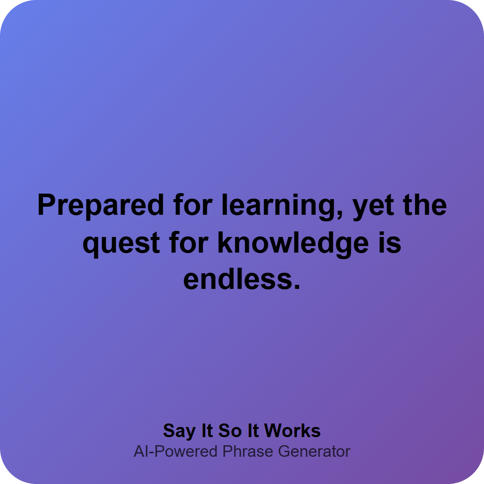 Prepared for learning, yet the quest for knowledge is endless.