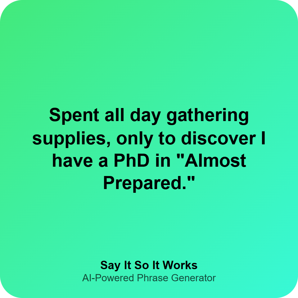 Spent all day gathering supplies, only to discover I have a PhD in "Almost Prepared."