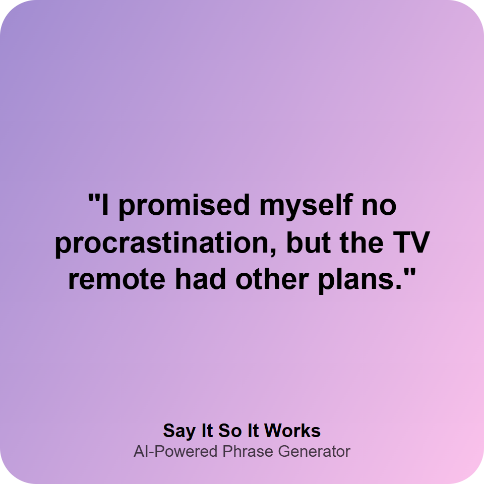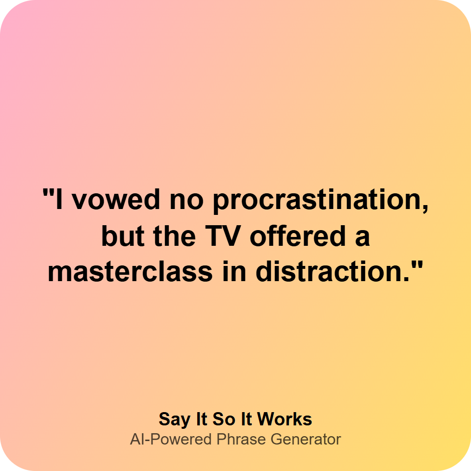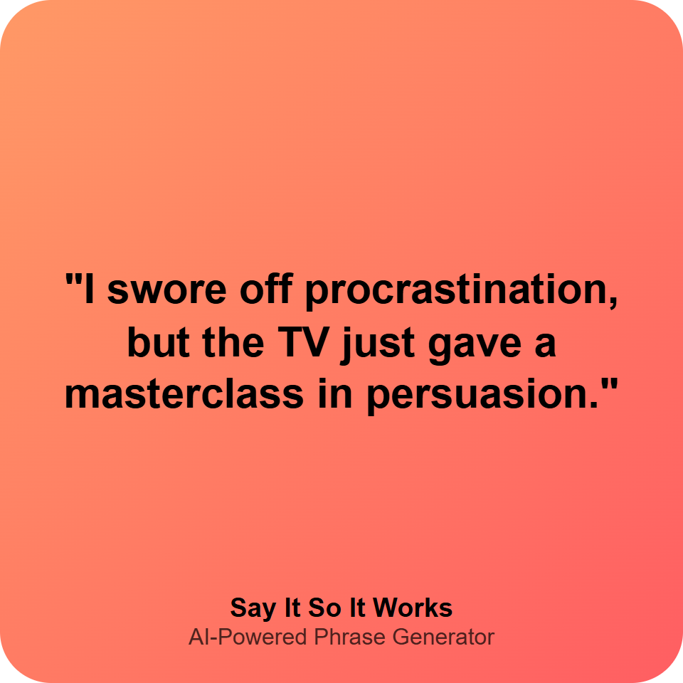 "I swore off procrastination, but the TV just gave a masterclass in persuasion."