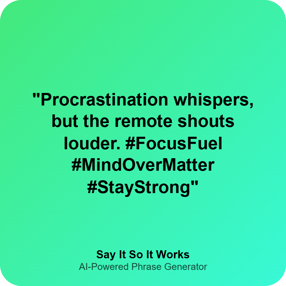 "Procrastination whispers, but the remote shouts louder. #FocusFuel #MindOverMatter #StayStrong"