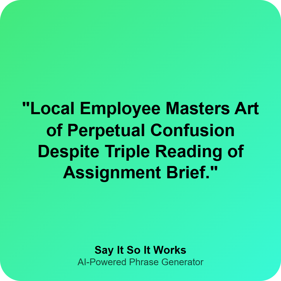 "Local Employee Masters Art of Perpetual Confusion Despite Triple Reading of Assignment Brief."
