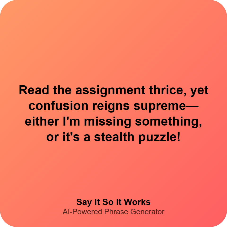 Read the assignment thrice, yet confusion reigns supreme—either I'm missing something, or it's a stealth puzzle!