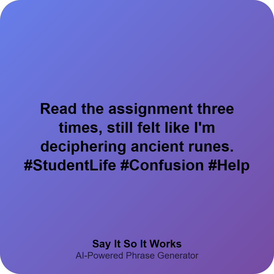 Read the assignment three times, still felt like I'm deciphering ancient runes. #StudentLife #Confusion #Help