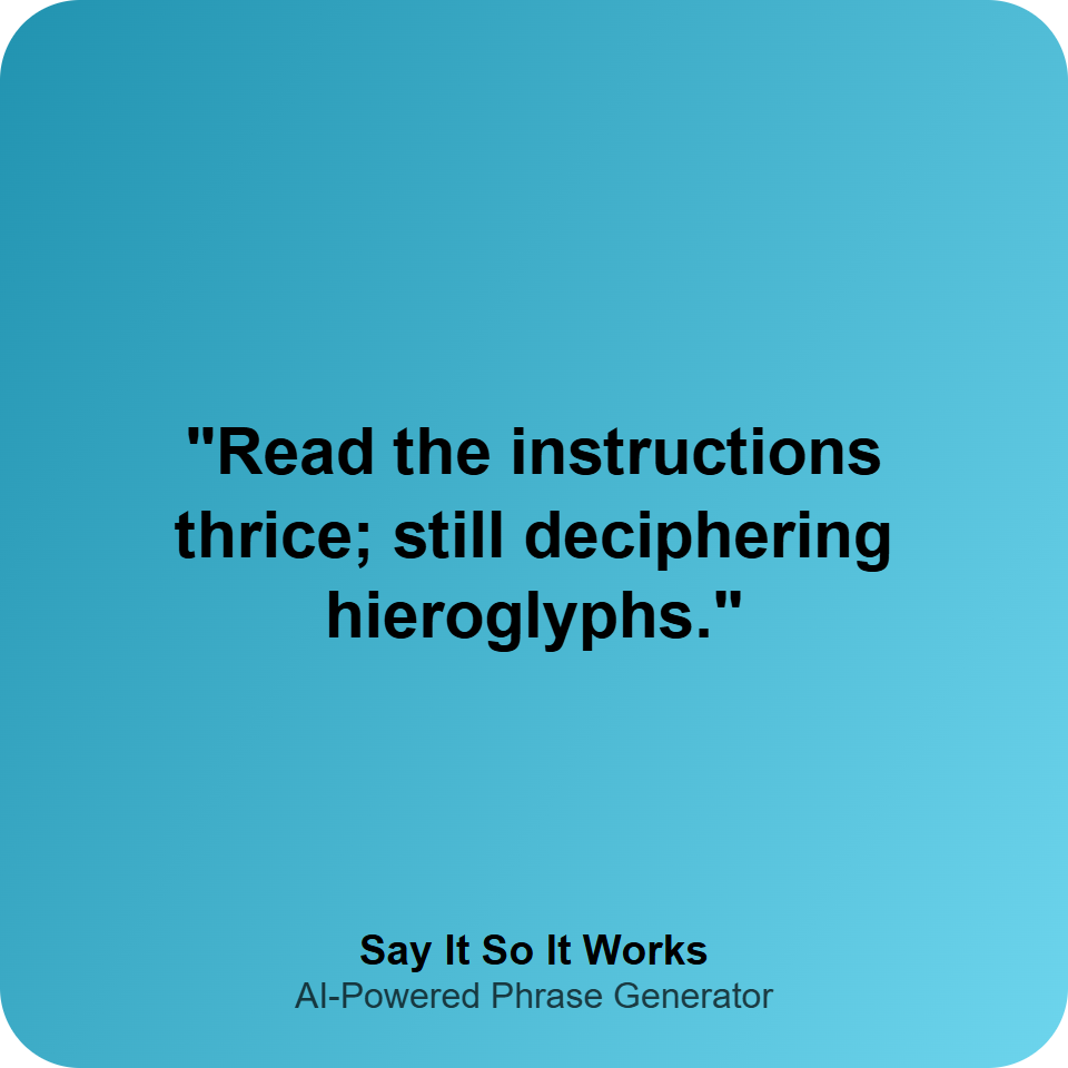 "Read the instructions thrice; still deciphering hieroglyphs."