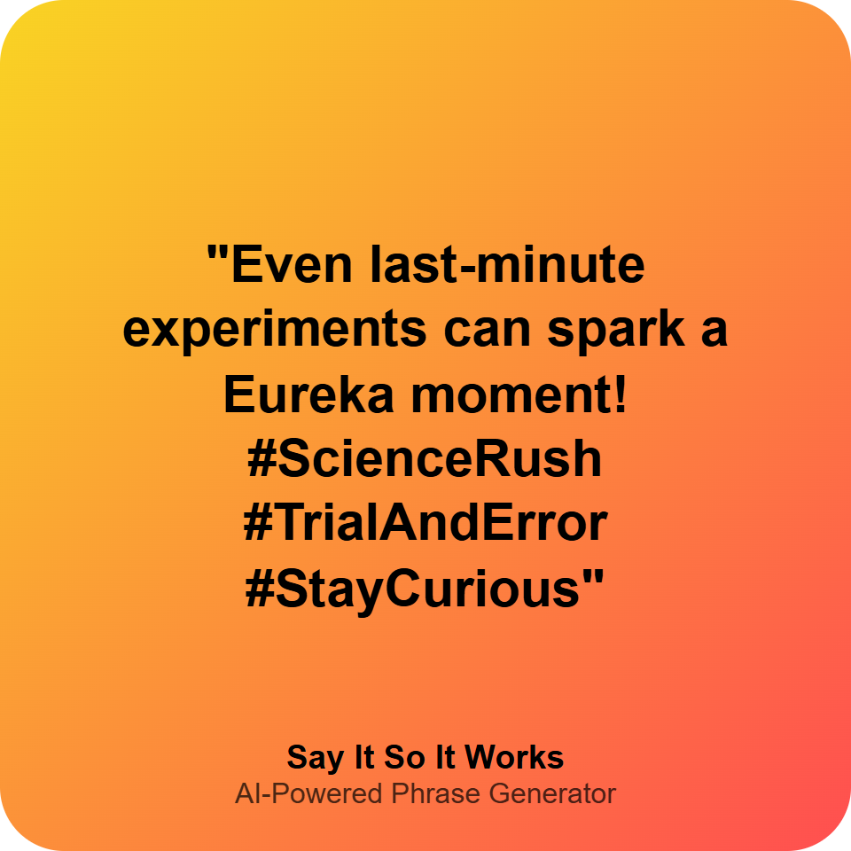 "Even last-minute experiments can spark a Eureka moment! #ScienceRush #TrialAndError #StayCurious"