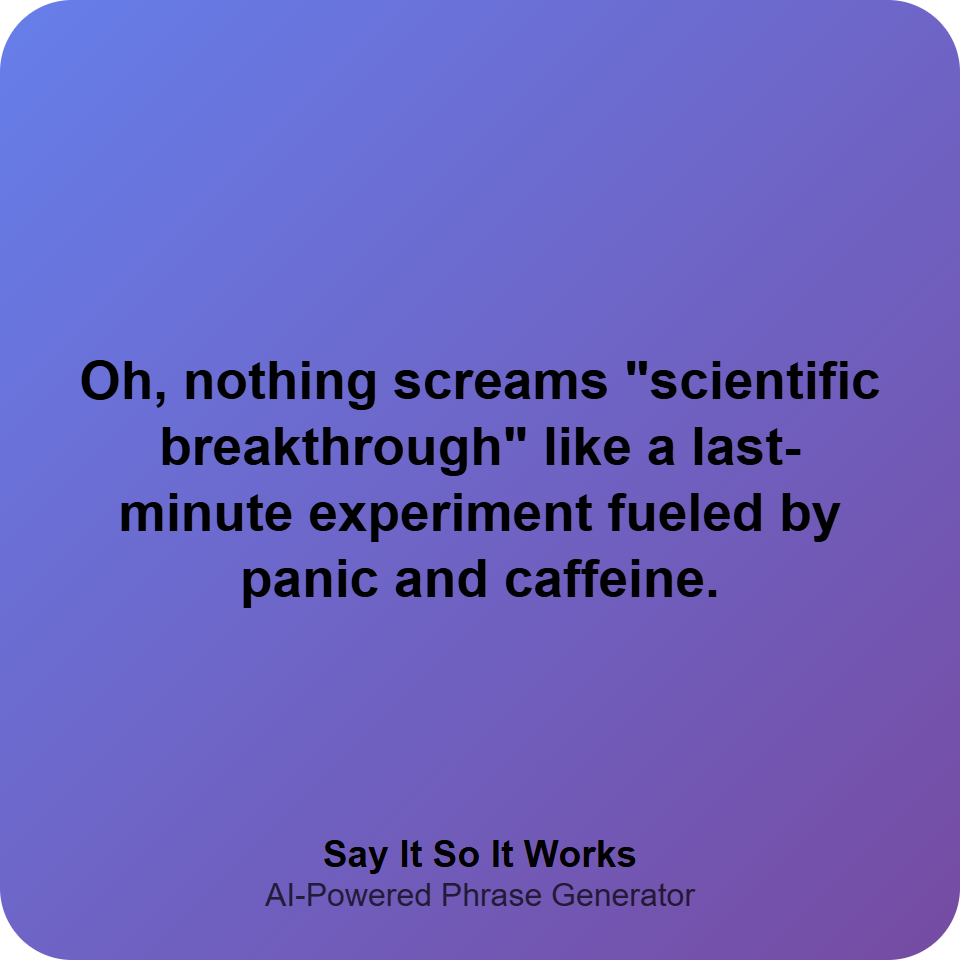 Oh, nothing screams "scientific breakthrough" like a last-minute experiment fueled by panic and caffeine.
