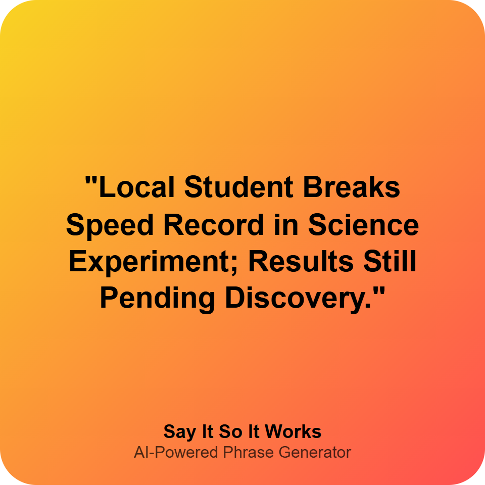 "Local Student Breaks Speed Record in Science Experiment; Results Still Pending Discovery."