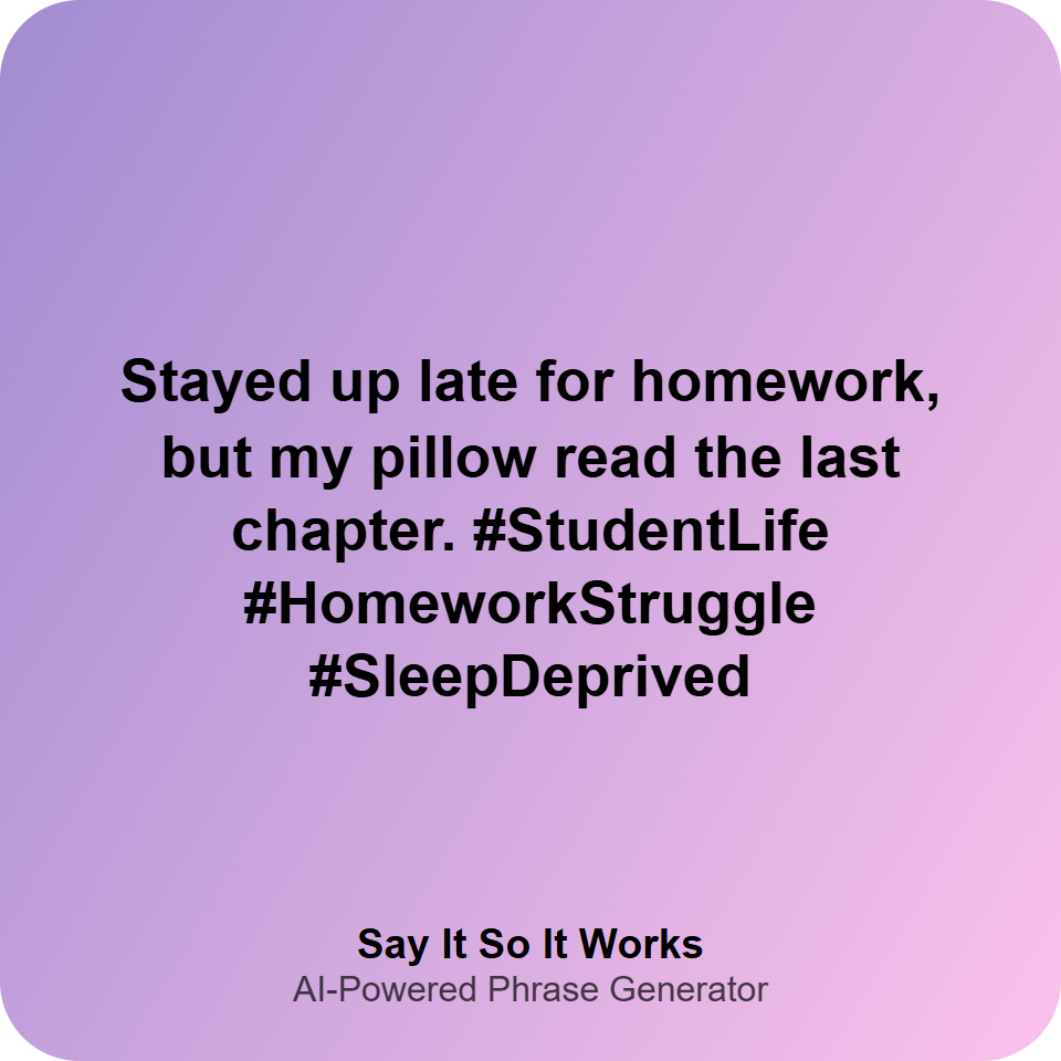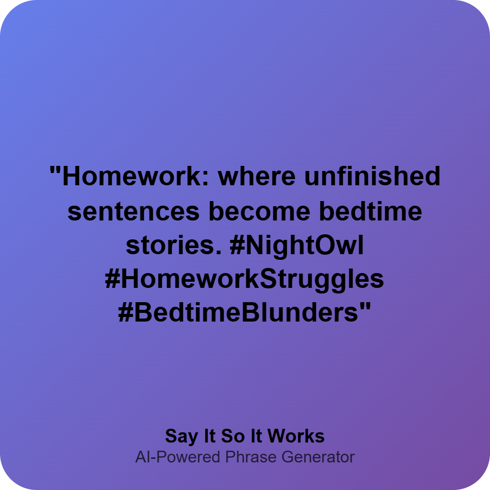 "Homework: where unfinished sentences become bedtime stories. #NightOwl #HomeworkStruggles #BedtimeBlunders"
