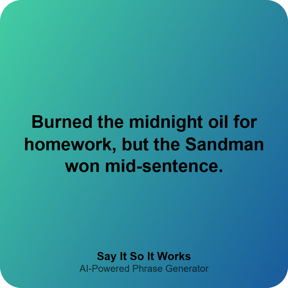 Burned the midnight oil for homework, but the Sandman won mid-sentence.