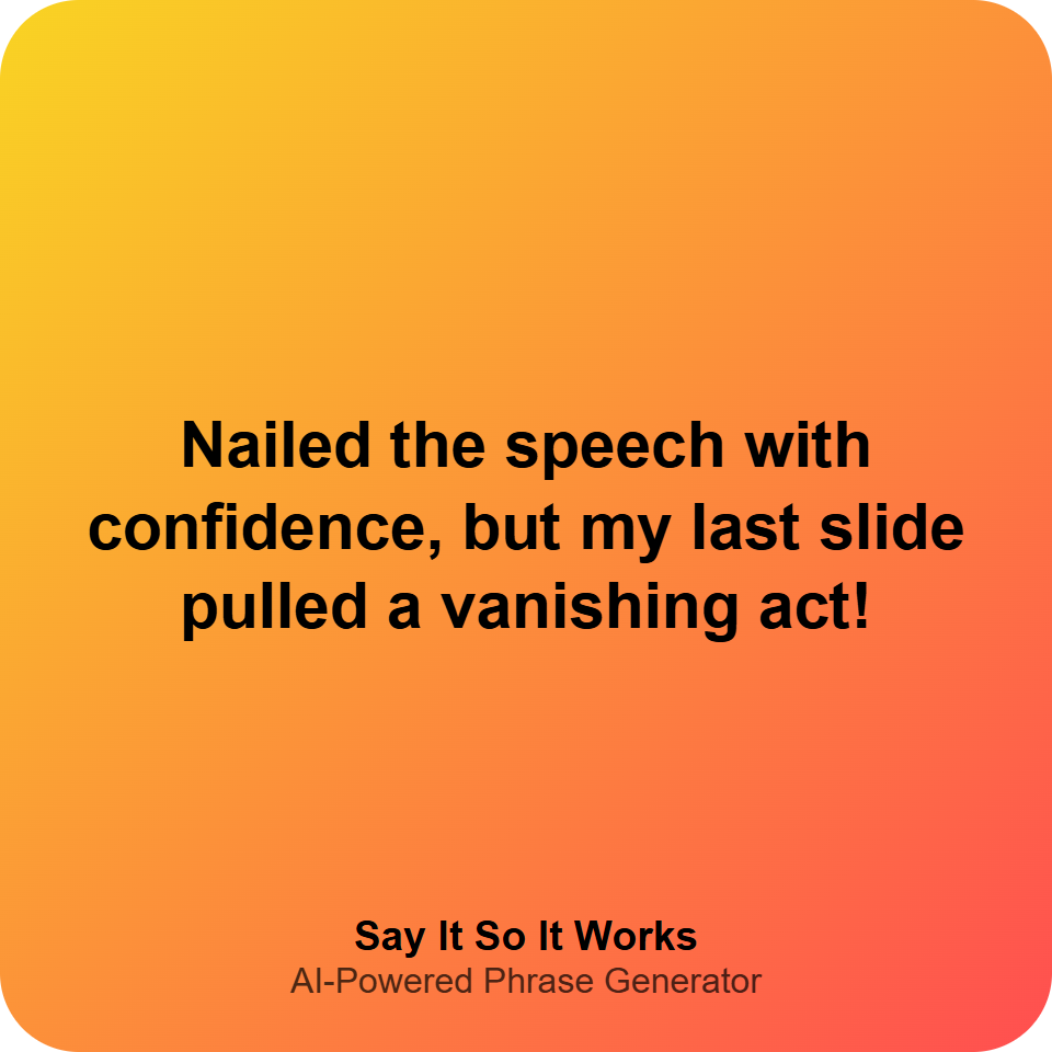 Nailed the speech with confidence, but my last slide pulled a vanishing act!