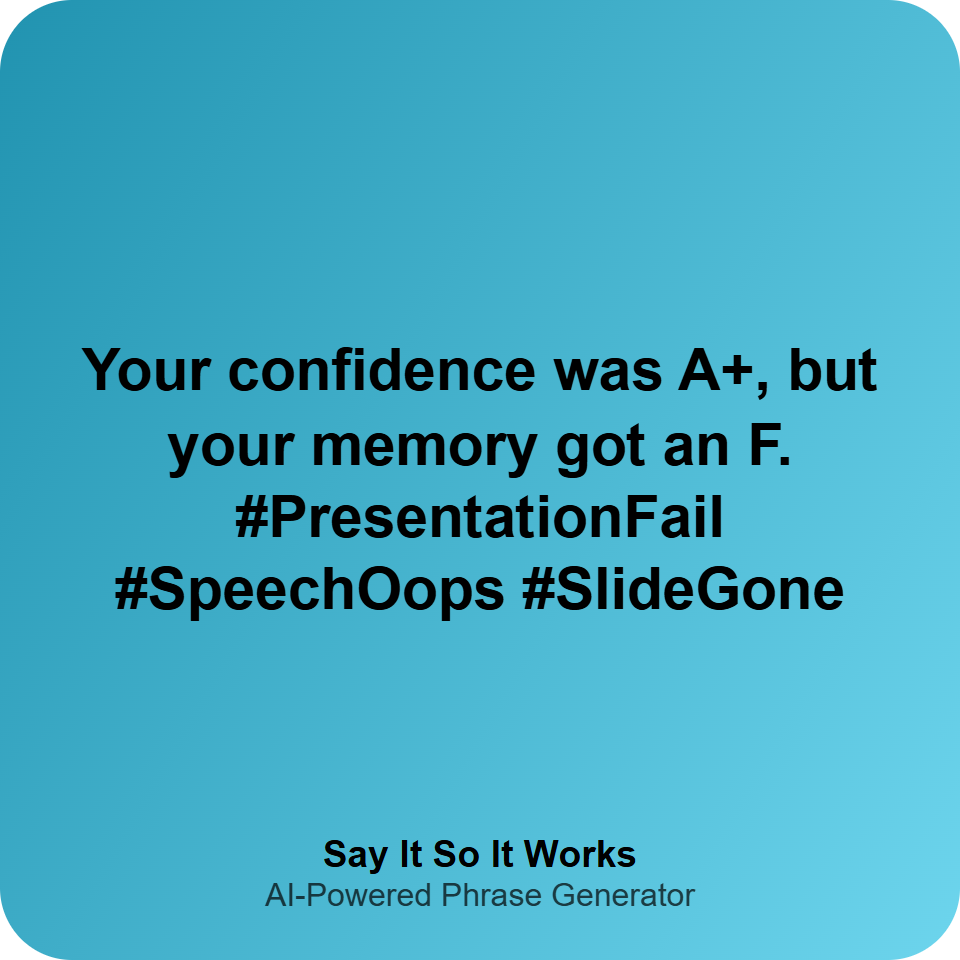 Your confidence was A+, but your memory got an F. #PresentationFail #SpeechOops #SlideGone
