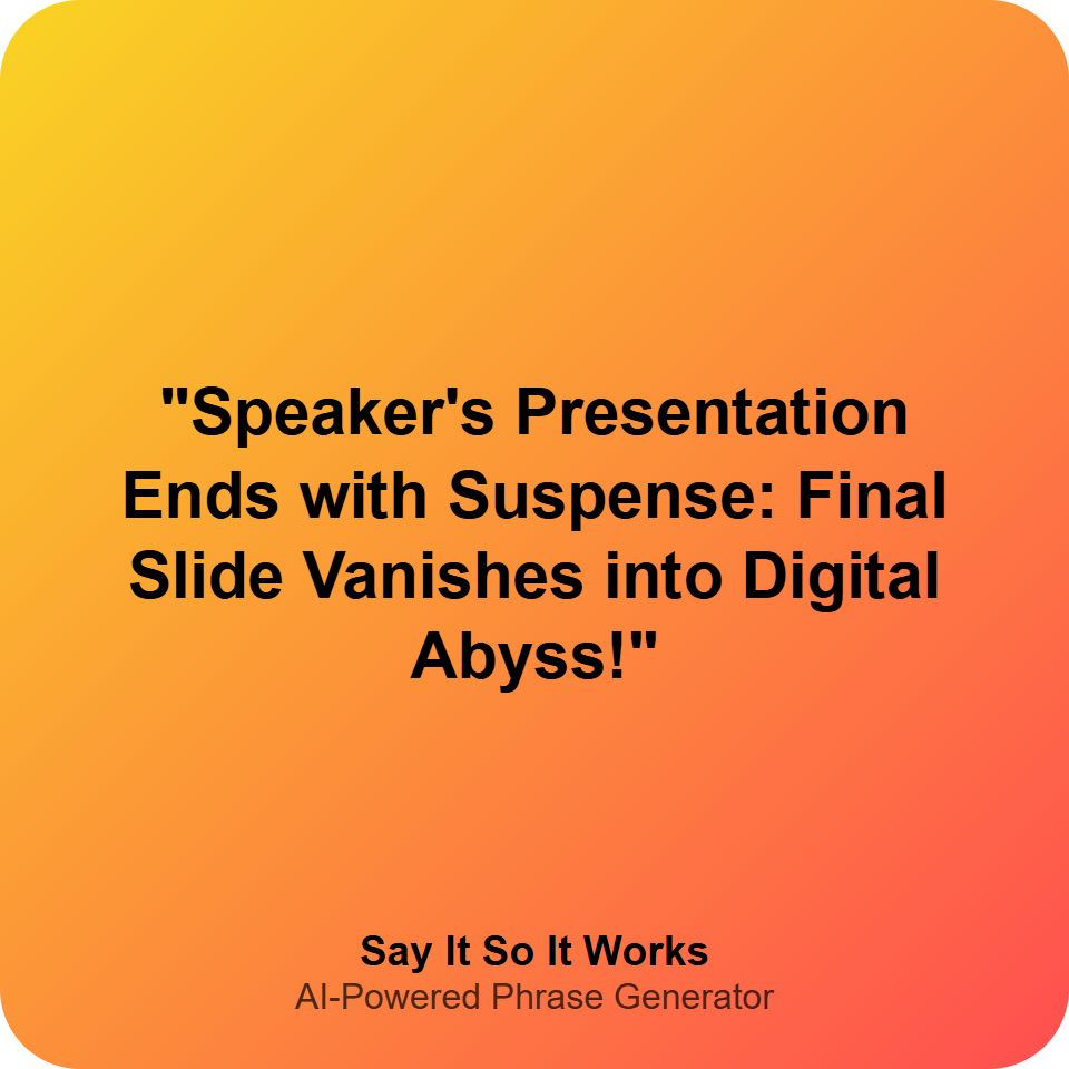 "Speaker's Presentation Ends with Suspense: Final Slide Vanishes into Digital Abyss!"