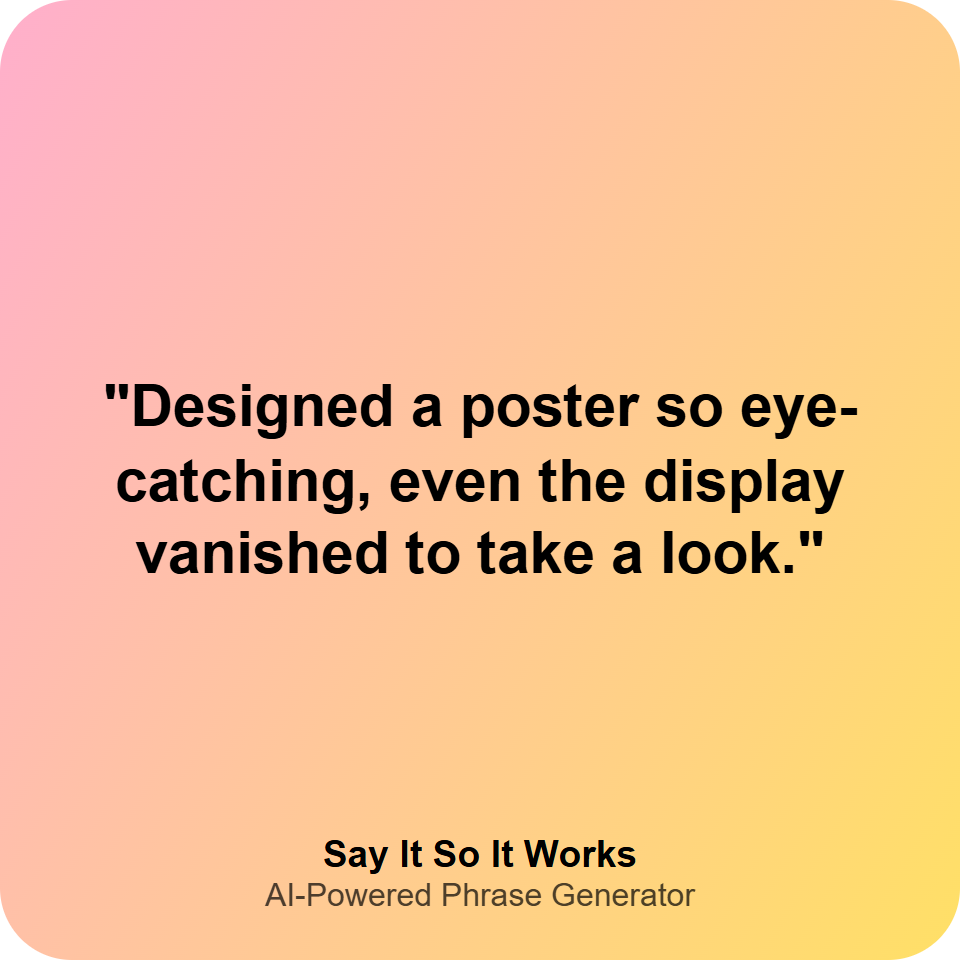 "Designed a poster so eye-catching, even the display vanished to take a look."