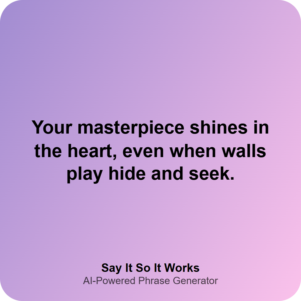 Your masterpiece shines in the heart, even when walls play hide and seek.