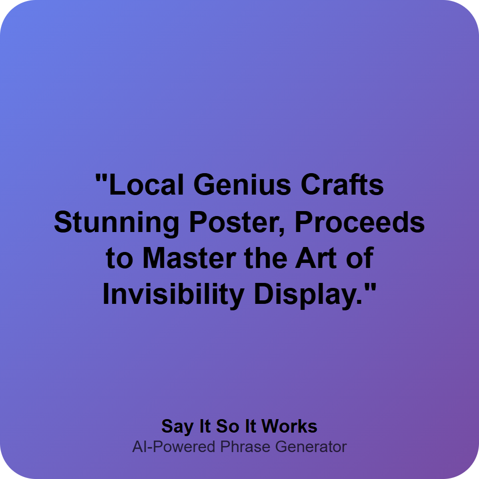 "Local Genius Crafts Stunning Poster, Proceeds to Master the Art of Invisibility Display."