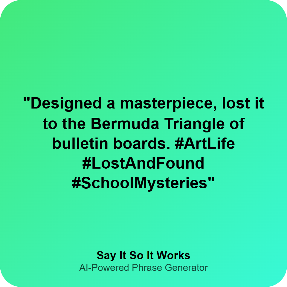 "Designed a masterpiece, lost it to the Bermuda Triangle of bulletin boards. #ArtLife #LostAndFound #SchoolMysteries"