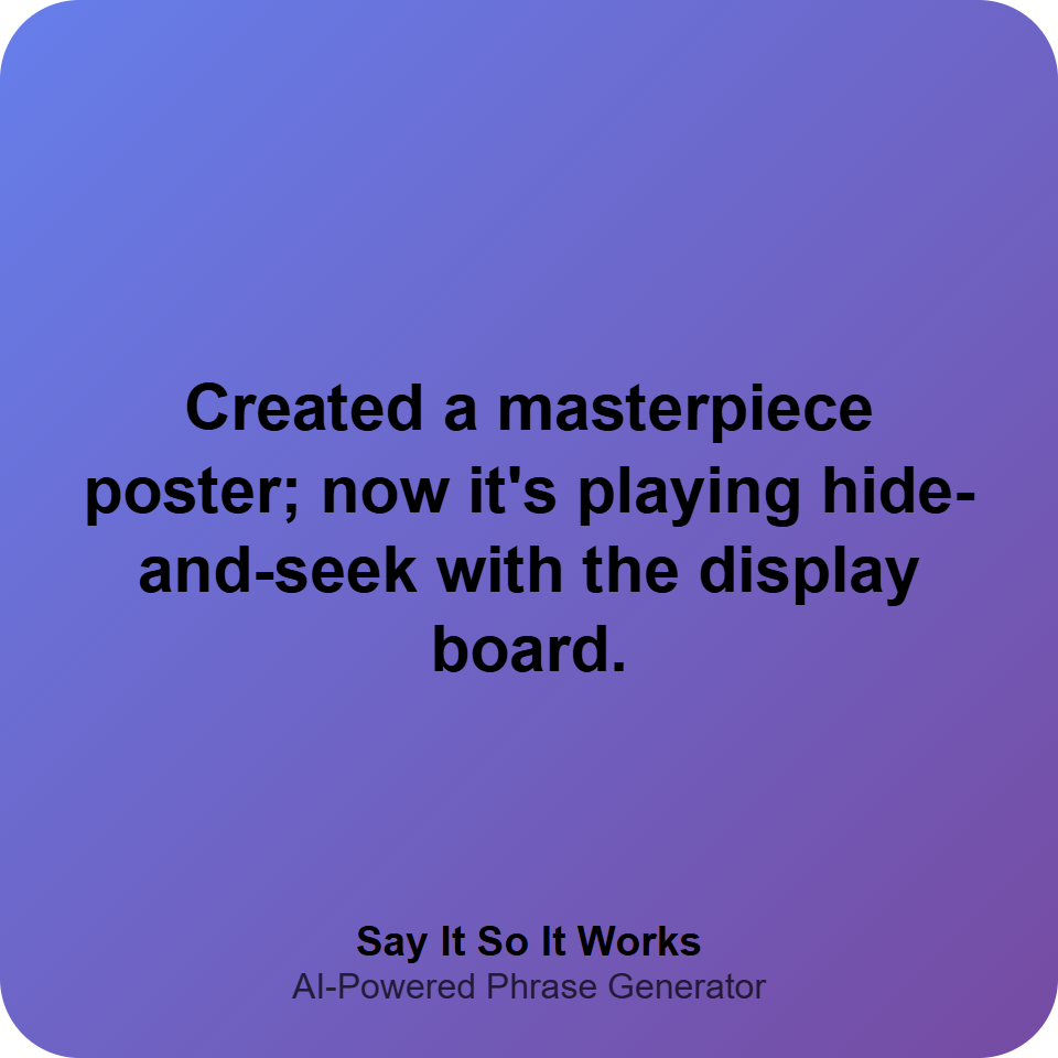 Created a masterpiece poster; now it's playing hide-and-seek with the display board.