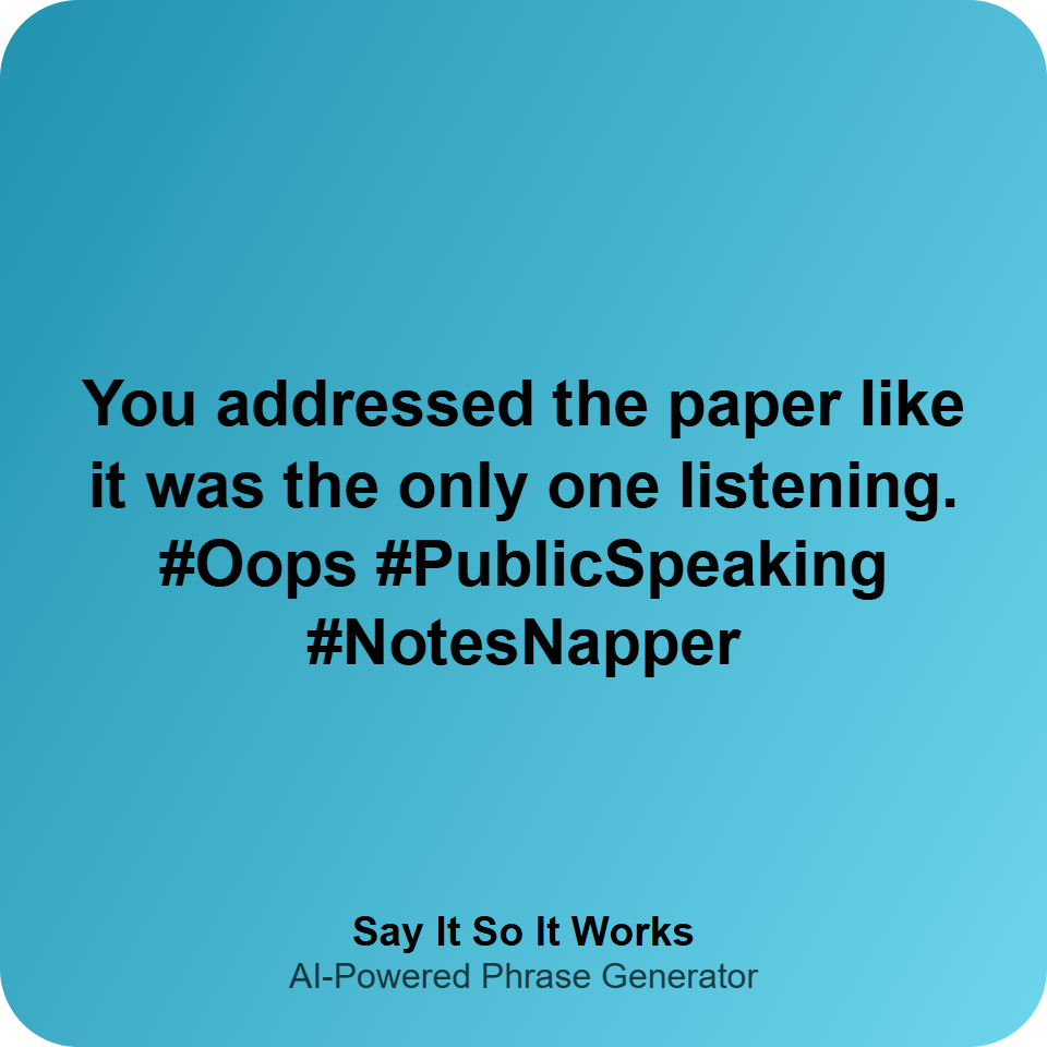 You addressed the paper like it was the only one listening. #Oops #PublicSpeaking #NotesNapper