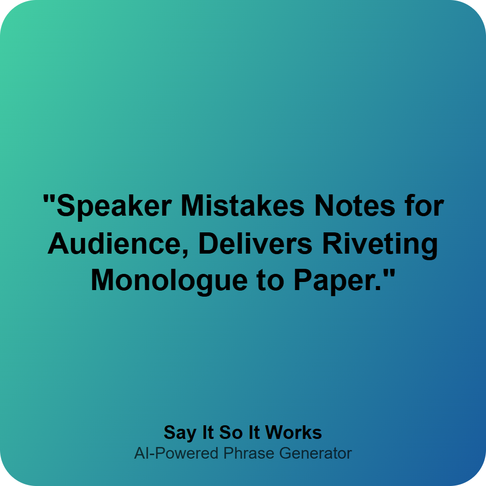 "Speaker Mistakes Notes for Audience, Delivers Riveting Monologue to Paper."