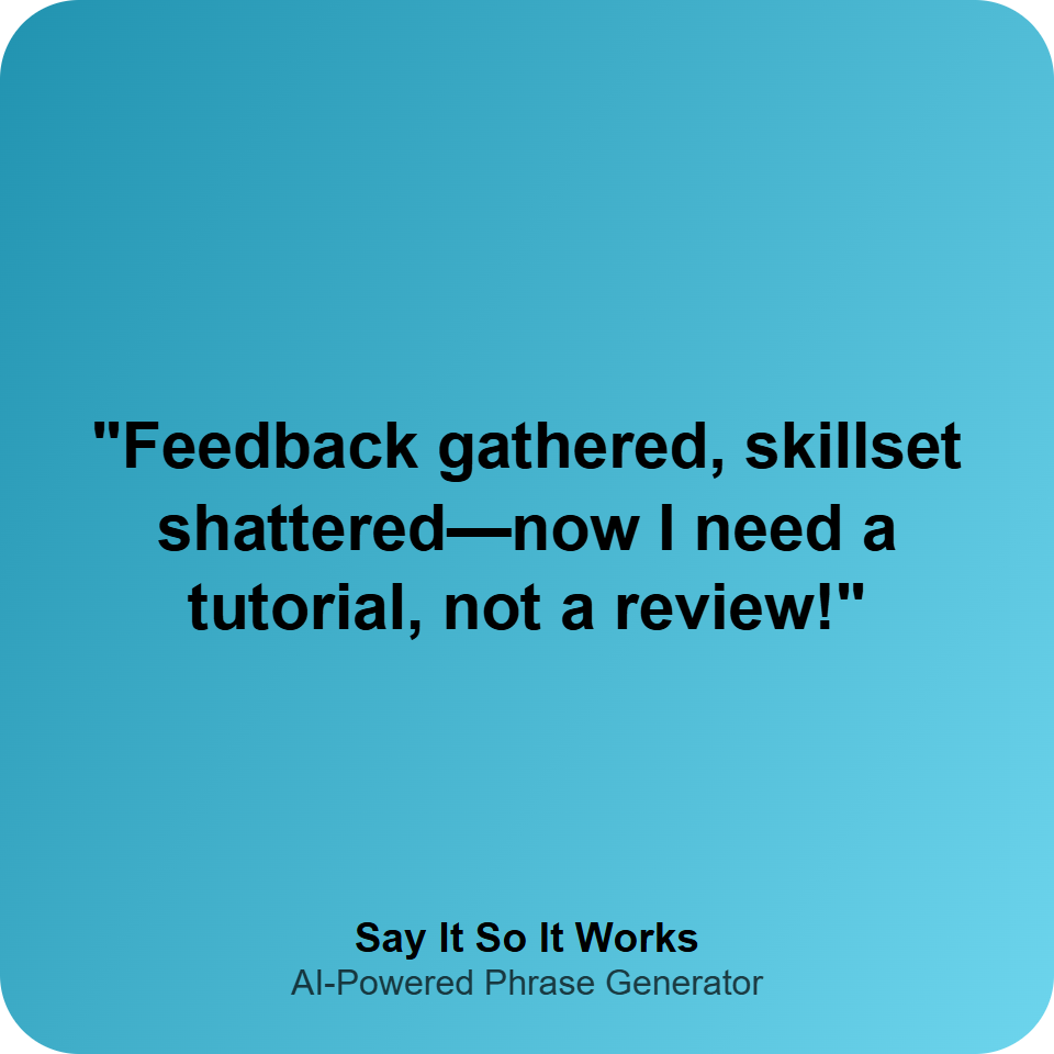 "Feedback gathered, skillset shattered—now I need a tutorial, not a review!"
