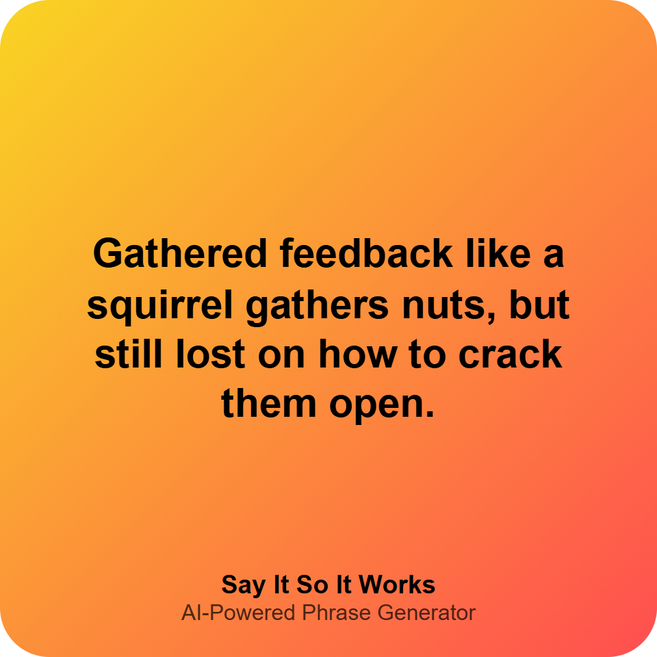 Gathered feedback like a squirrel gathers nuts, but still lost on how to crack them open.