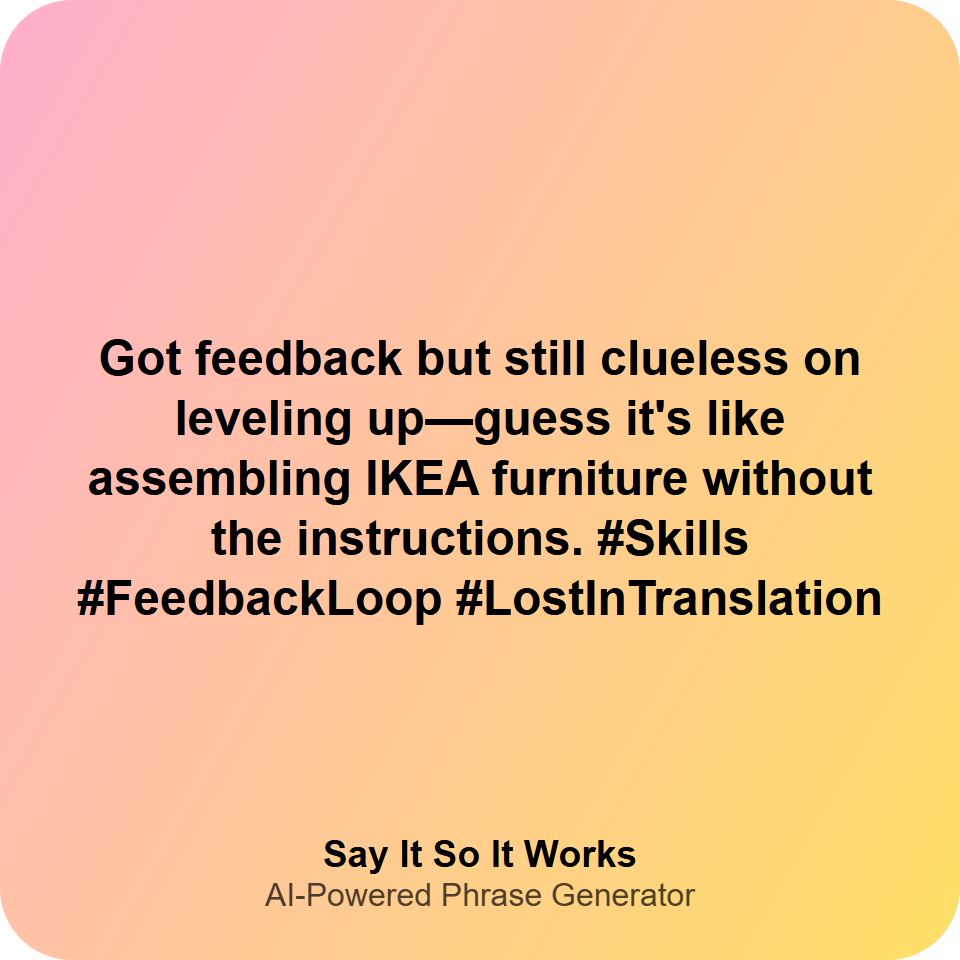Got feedback but still clueless on leveling up—guess it's like assembling IKEA furniture without the instructions. #Skills #FeedbackLoop #LostInTranslation