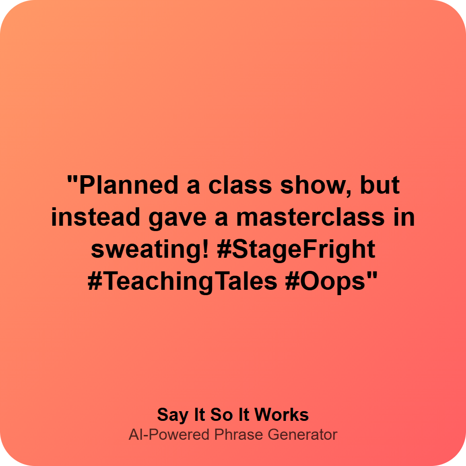 "Planned a class show, but instead gave a masterclass in sweating! #StageFright #TeachingTales #Oops"