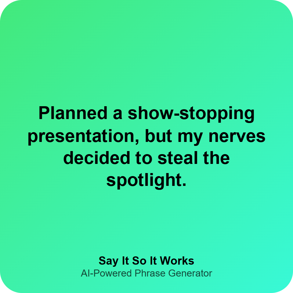 Planned a show-stopping presentation, but my nerves decided to steal the spotlight.