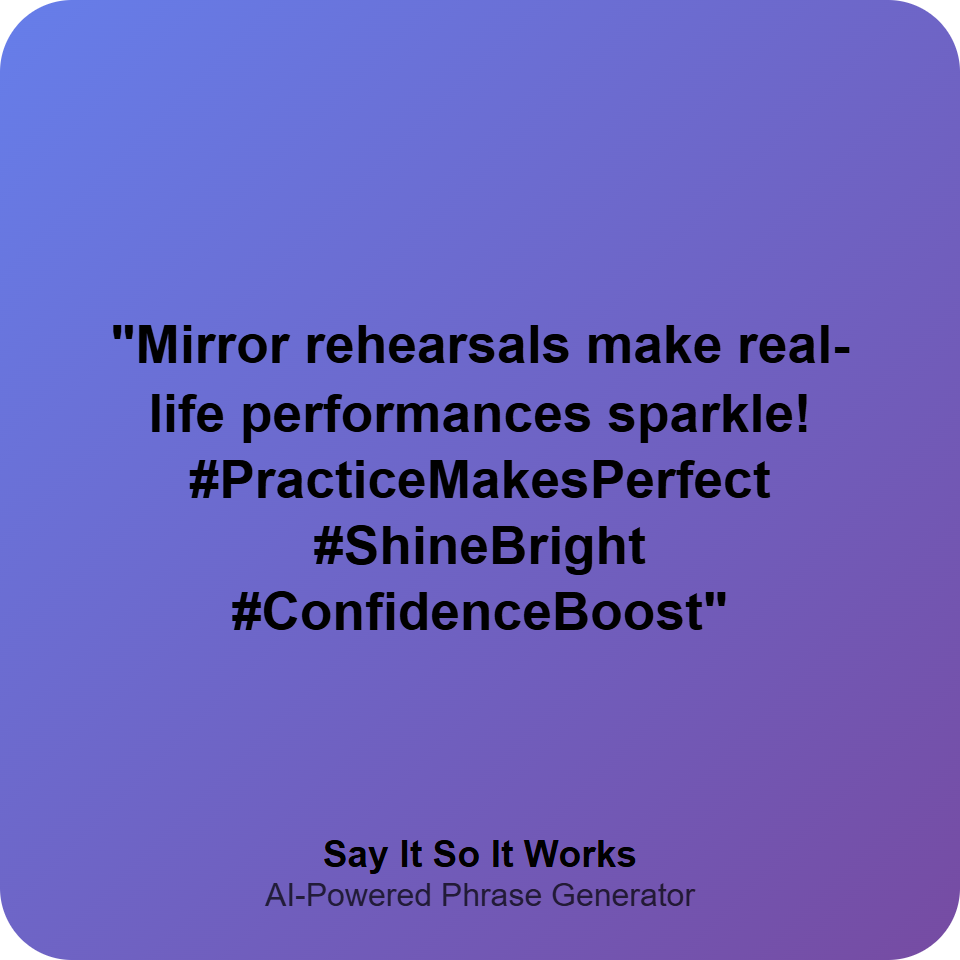 "Mirror rehearsals make real-life performances sparkle! #PracticeMakesPerfect #ShineBright #ConfidenceBoost"