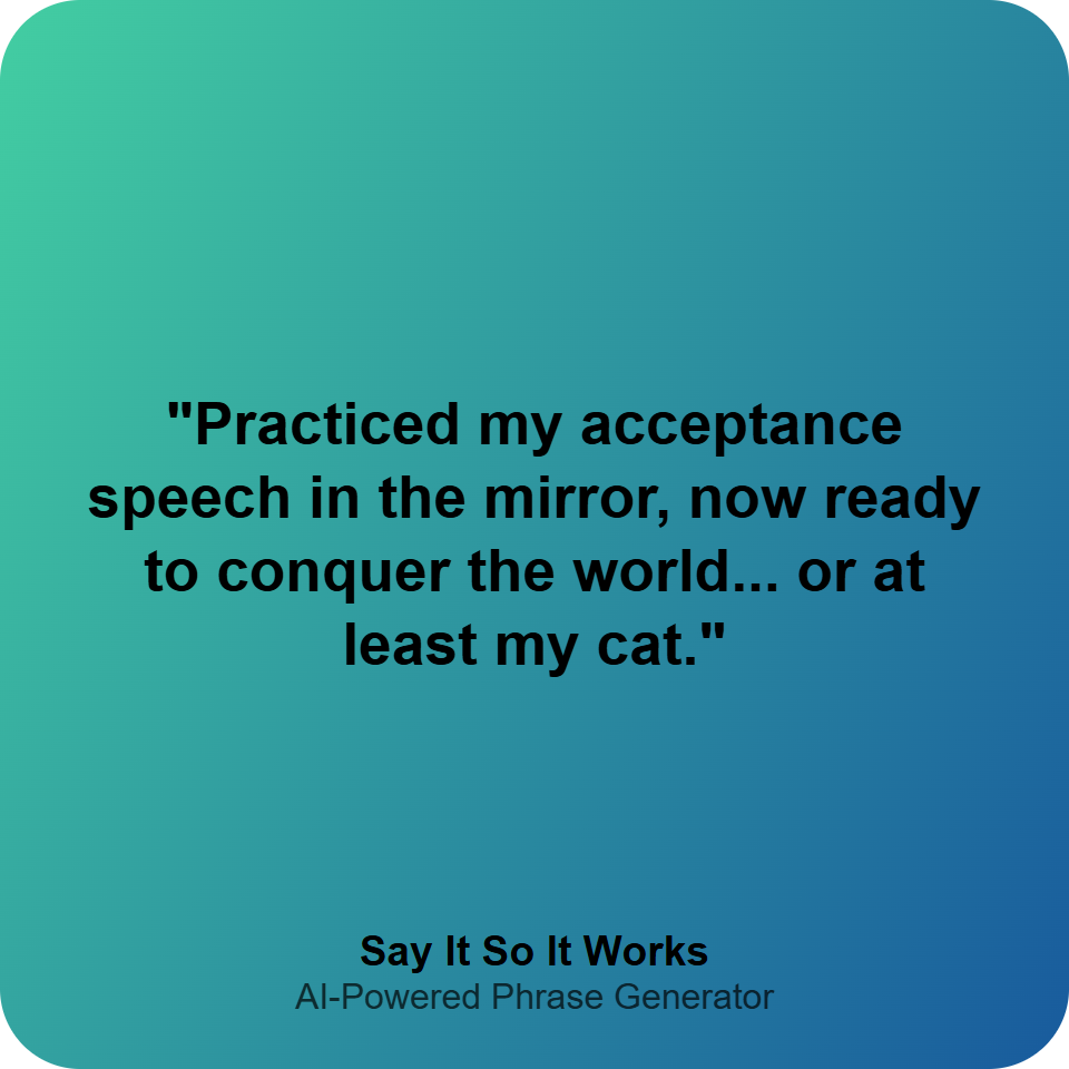 "Practiced my acceptance speech in the mirror, now ready to conquer the world... or at least my cat."